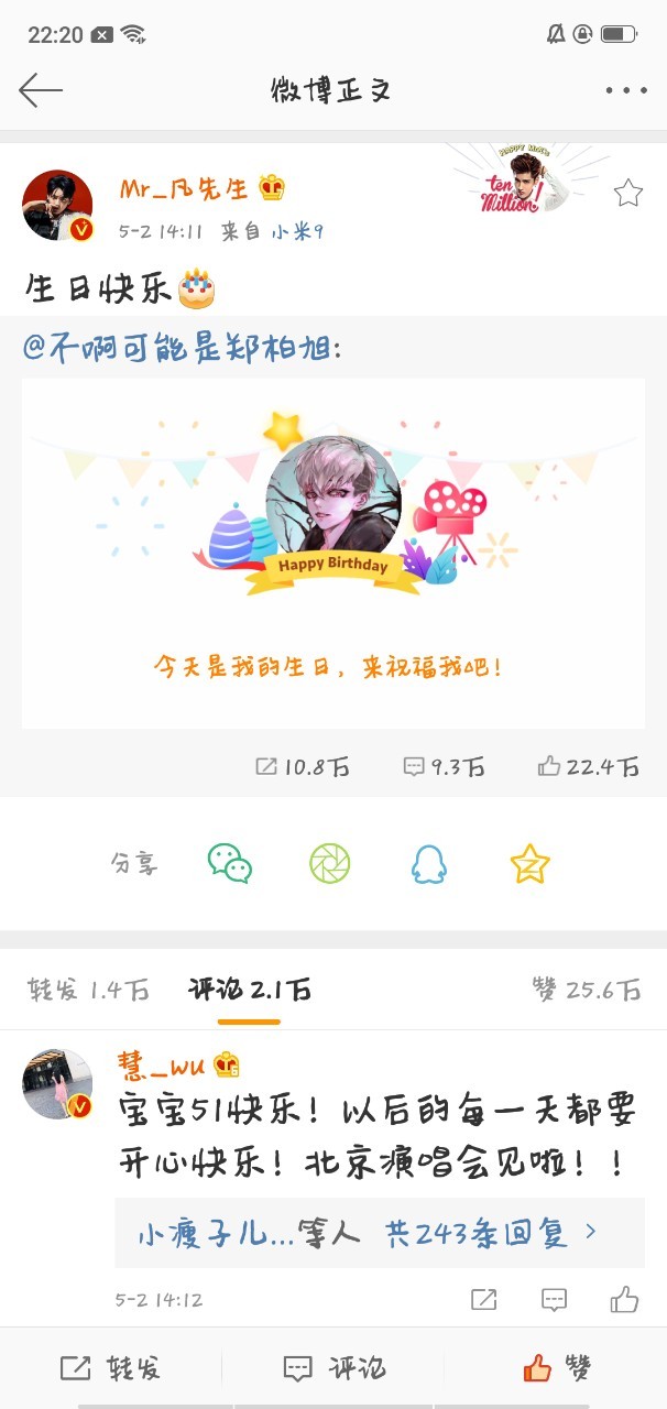 对不起啊,因为上学迟了一天送上祝福。