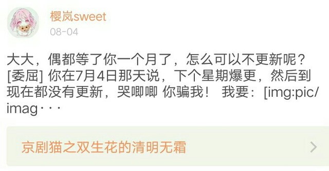 同时正式宣布《京剧猫之双生花的清明无霜》正式改名为《双生轮回,叹无缘》啦!