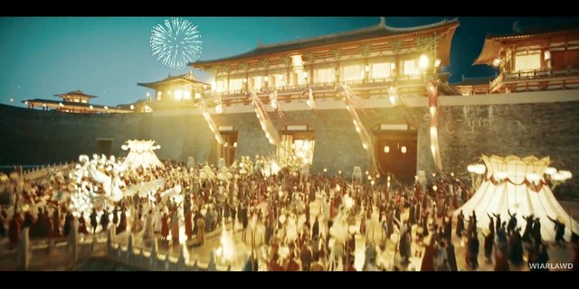 天上突然放了焰火,启明灯点点亮光随之而起。