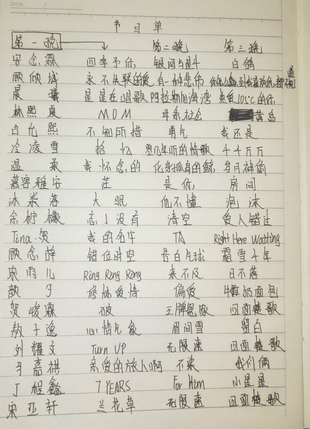 薛玖月(贝贝)好,你们把曲目告诉我,我回去统计一个表