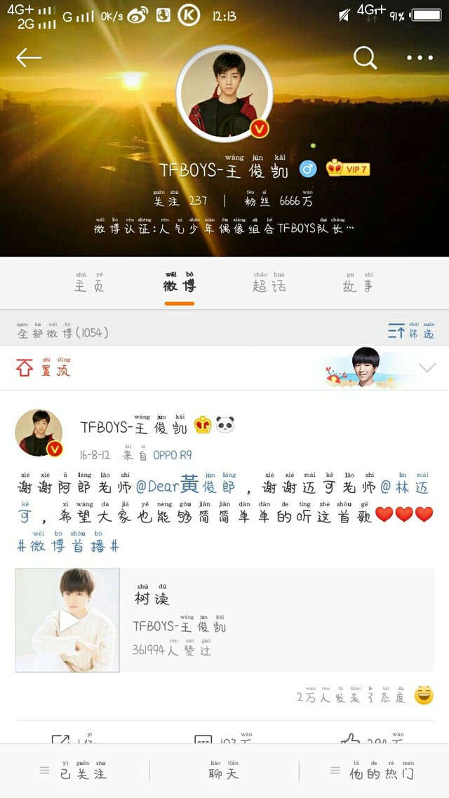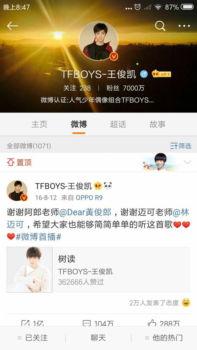 王俊凯的粉丝已经到达7000万了
