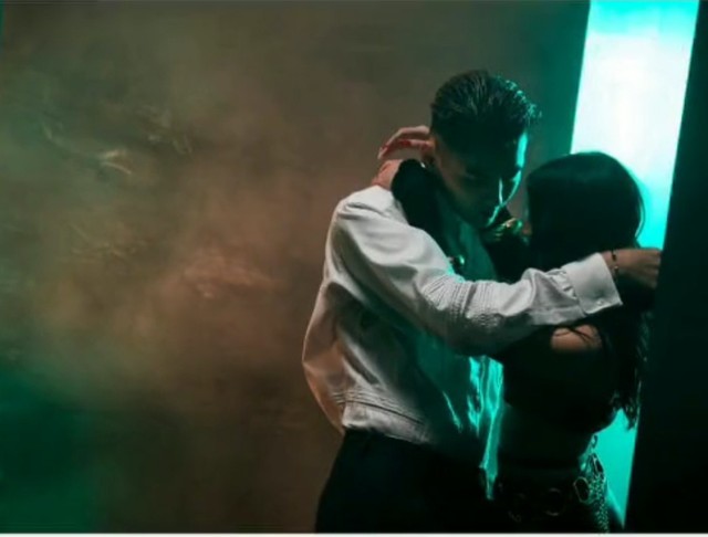 一个火辣的美女走向亦凡哥,美女靠近的同时亦凡哥将手搭在她的肩上,抚摸着她的头发。下一刻亦凡哥反客为主,将美女壁咚在身后,两人抱在一起。