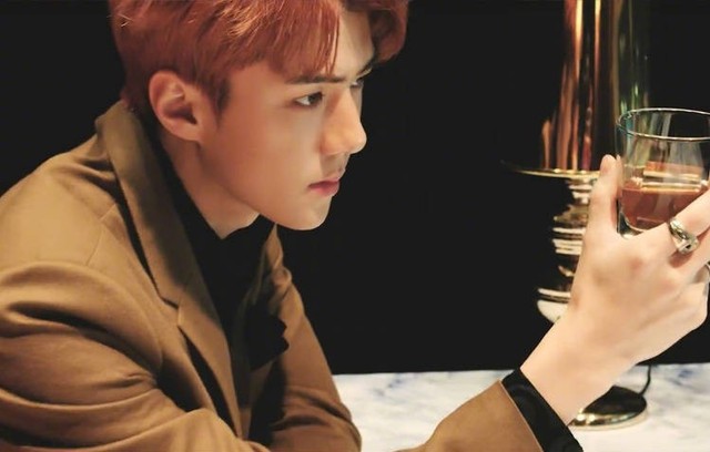 只见吴世勋好像忙完了工作的事,从一旁拿着装有Whisky的酒杯,又看了看沙发的女人。
