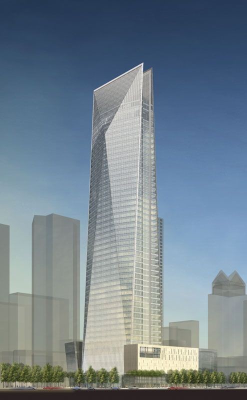整栋楼由下看上,是座非常有现代设计感的玻璃大楼,被阳光照射之下,微微映着美丽的银丝光感的科技蓝,而高楼大厦最下方的入口处则是有着大批等着排队进去的人潮