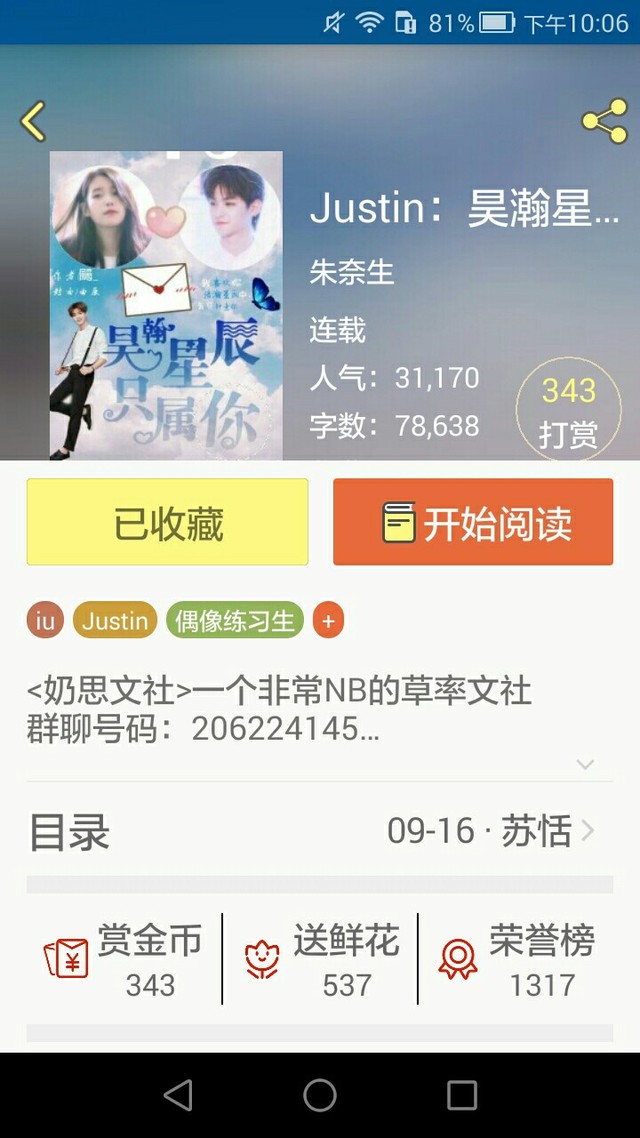 作者大大Justin:昊翰星辰只属你