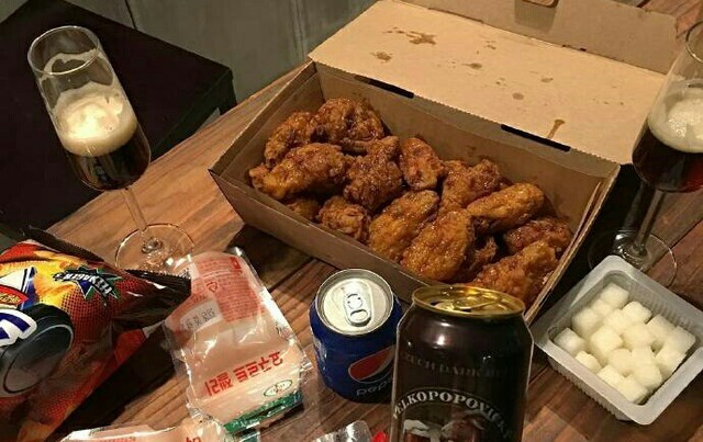 宋行嘉.喏,给你们俩买的炸鸡、薯片和饮料。