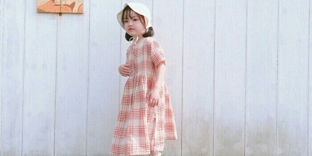 今天的丢丢打扮的特别漂亮,头上戴着一顶小白帽,再配上红色格子的连衣裙衬得她可爱极了。
