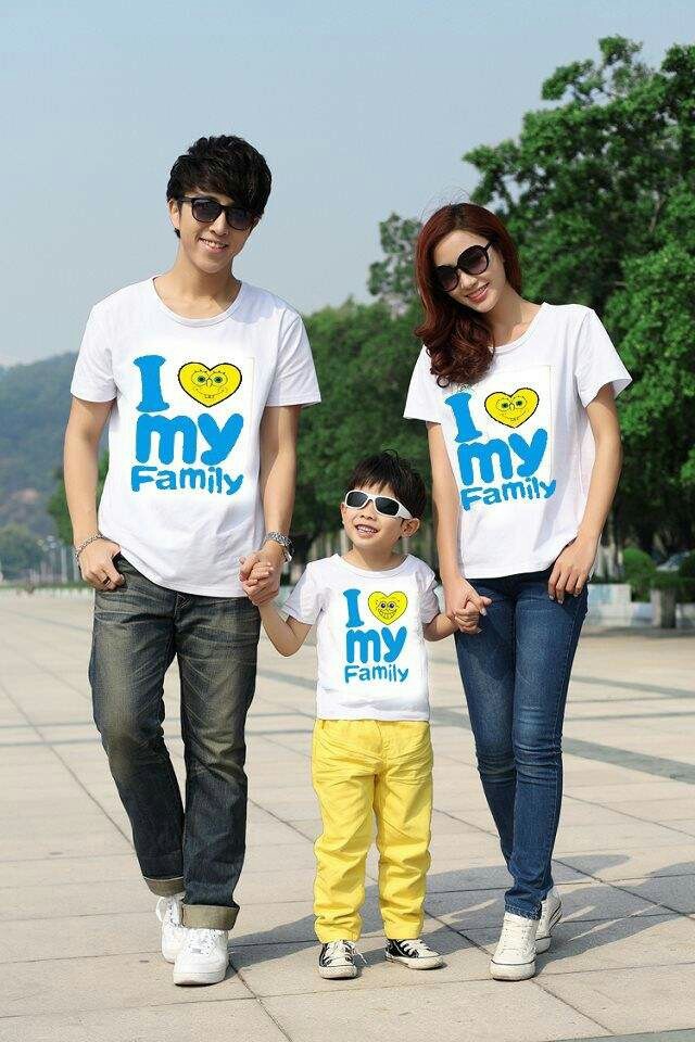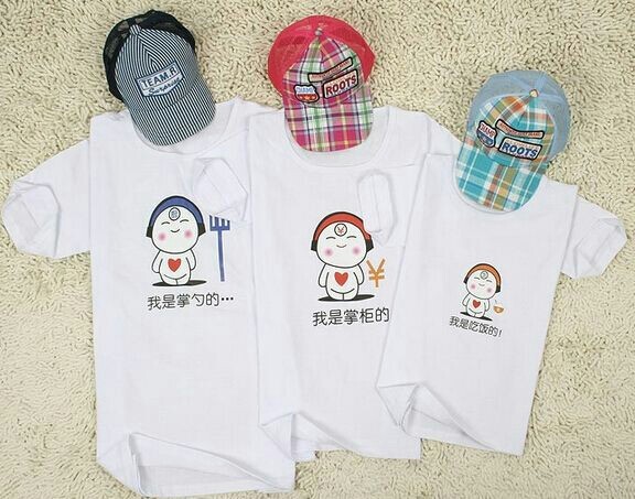 他们三人去了亲子装区域,他们选了两种亲子装