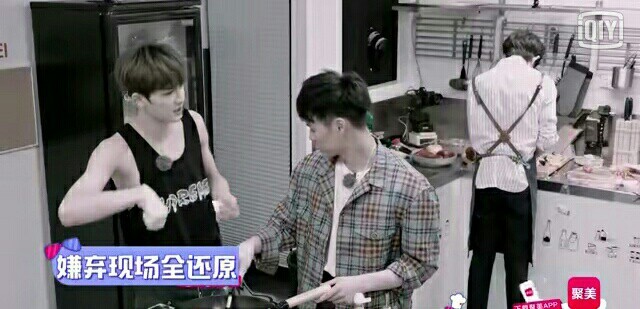 朱正廷肉炒好了直接放在锅里面【受伤的手放到Jeffrey的肩膀上】