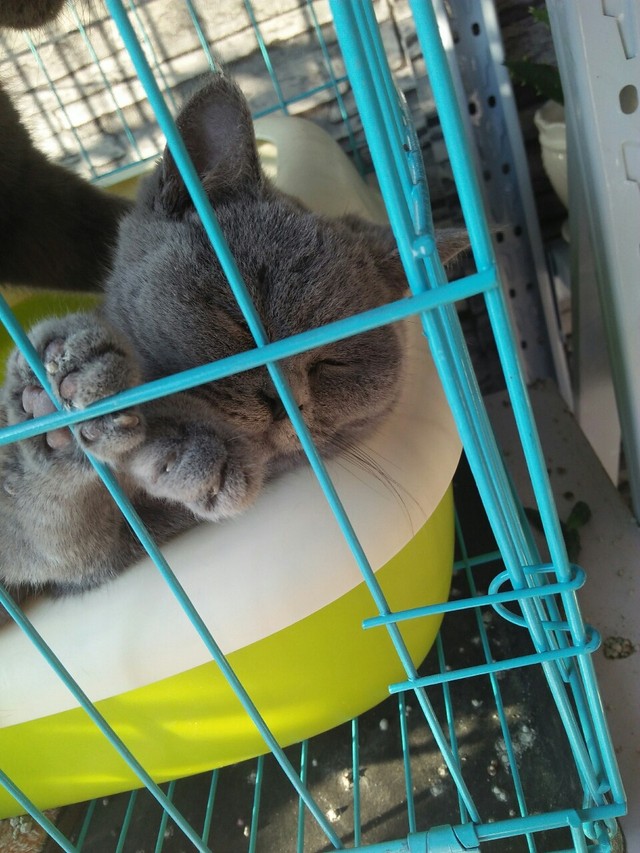 走进一看,是一只蓝猫。