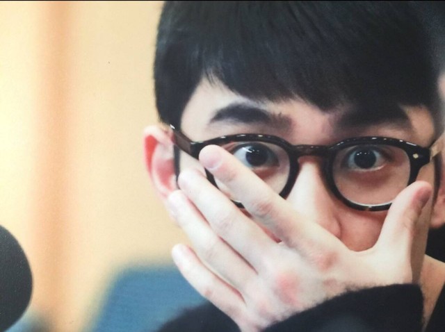 暻秀站在沙发旁,向上推了推眼镜框,一脸的惊恐。