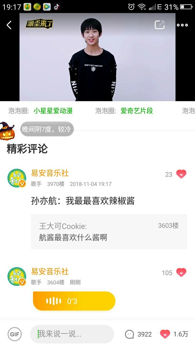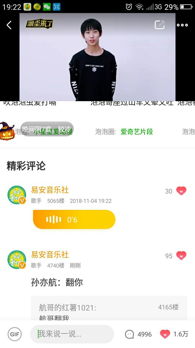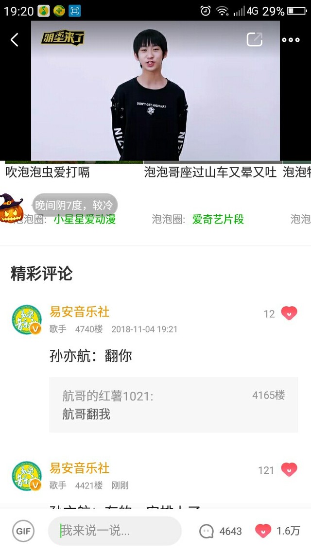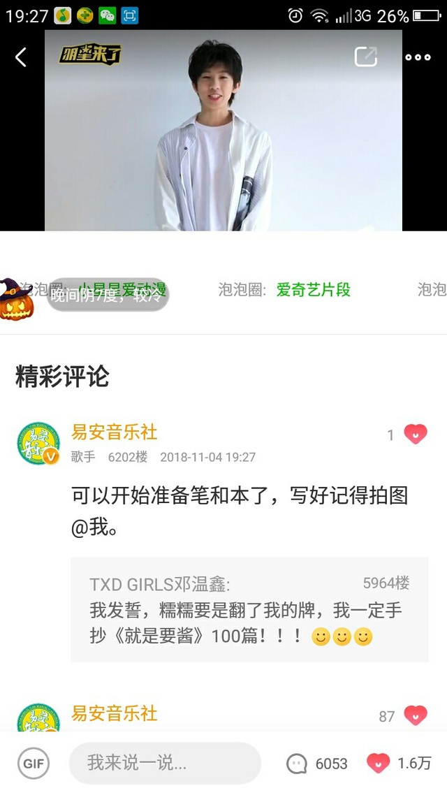 今天晚上19:00,易安来临的爱奇艺泡泡圈。当时我看的时候都激动死了,一直在信息,发问题。给你们看看翻牌and发信息情况。