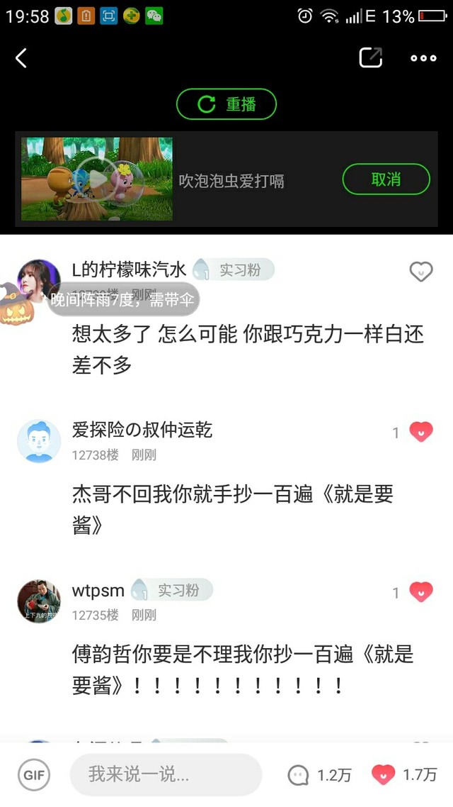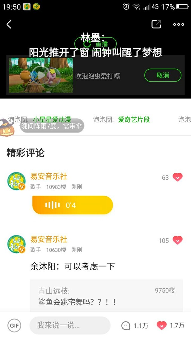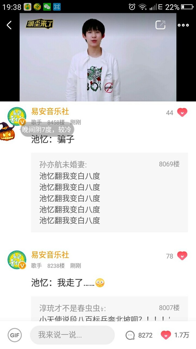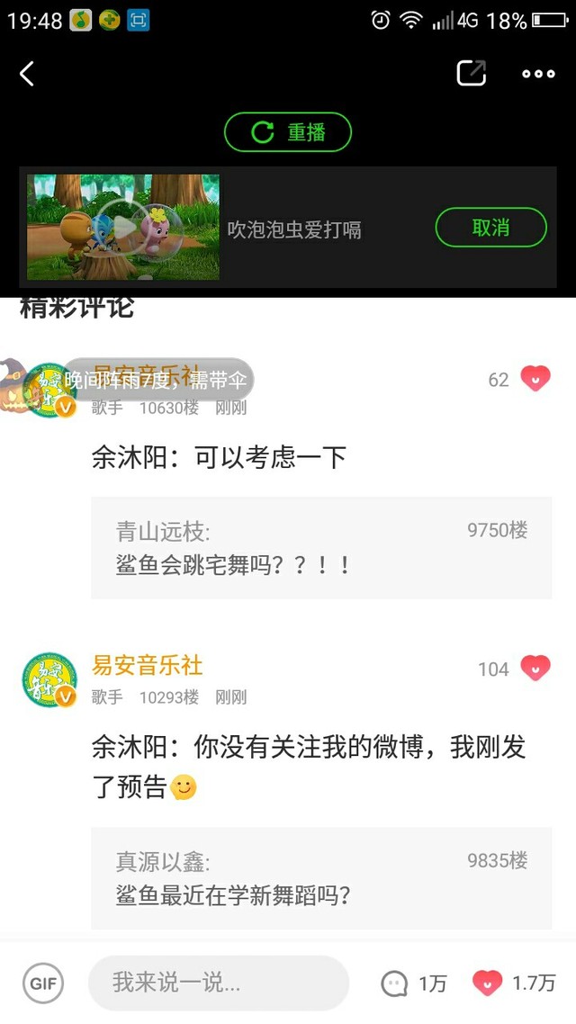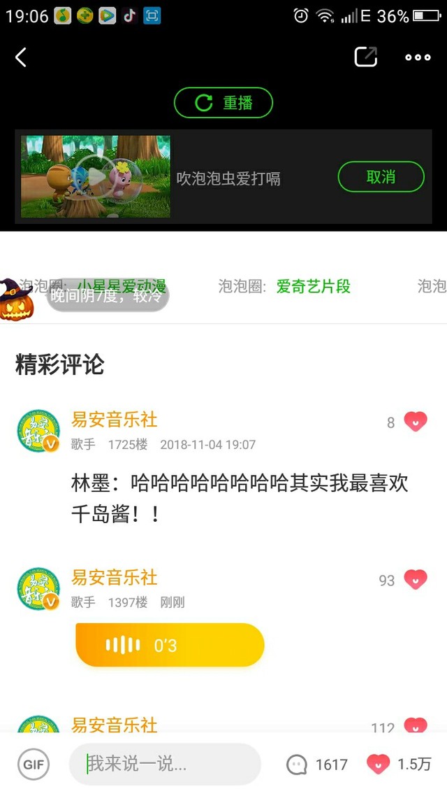 今天晚上19:00,易安来临的爱奇艺泡泡圈。当时我看的时候都激动死了,一直在信息,发问题。给你们看看翻牌and发信息情况。