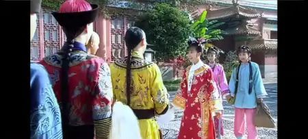 小燕子紫薇金锁雪瑶四人手拉手高兴的去漱芳斋,但是路上遇见了皇上