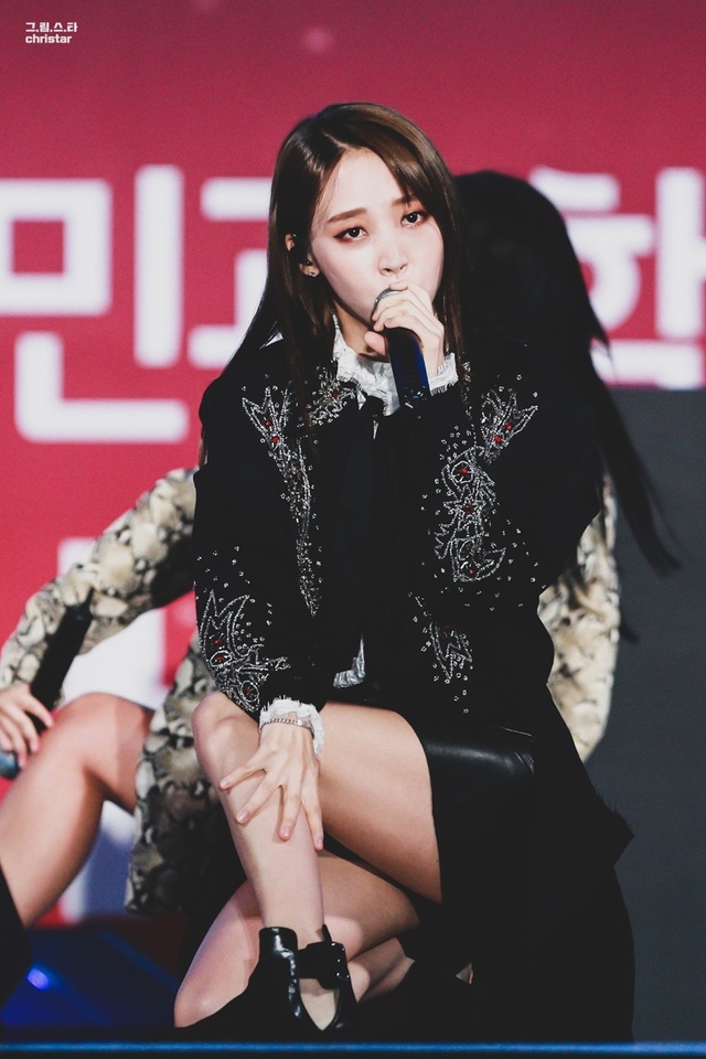 橘佑美一如既往地走着中性帅气的风格,整个人形象干练中不失优雅,如同中世纪贵族般的蕾丝刺绣衣领软软垂下,外套上精致的纹路和镶嵌着红宝石和郑希媛的指甲形成呼应。短靴皮裙下,那双因为常年练舞而保有流畅肌肉线条的双腿,看着就觉得诱惑力十足。