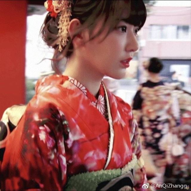 她下了塌手持旱烟杆指甲在上摩挲轻划,身着规矩传统和服清淡色彩犹如夏日炎炎中绽开的粉荷初莲,画面一转手中烟杆替换成和风纸扇,素手抖扇面展开轻颤,随着轻缓的乐声举动间都是大和抚子般雅致而美丽。