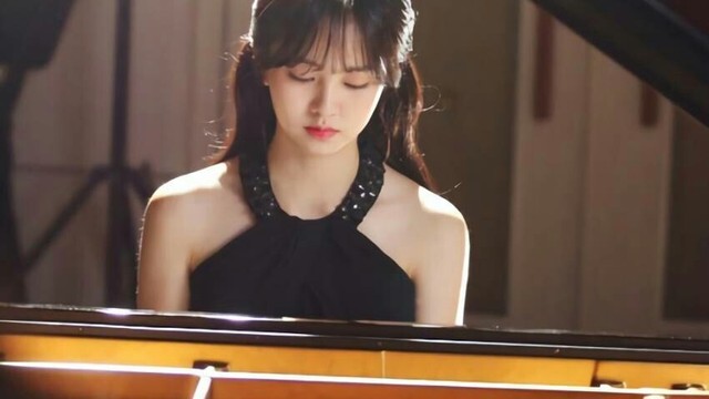 钢琴前的女孩,有着清澈明亮的瞳孔,弯弯的柳眉,长长的睫毛微微地颤动着,白皙无瑕的皮肤透出淡淡红粉,但面无表情,一心的在弹琴.
