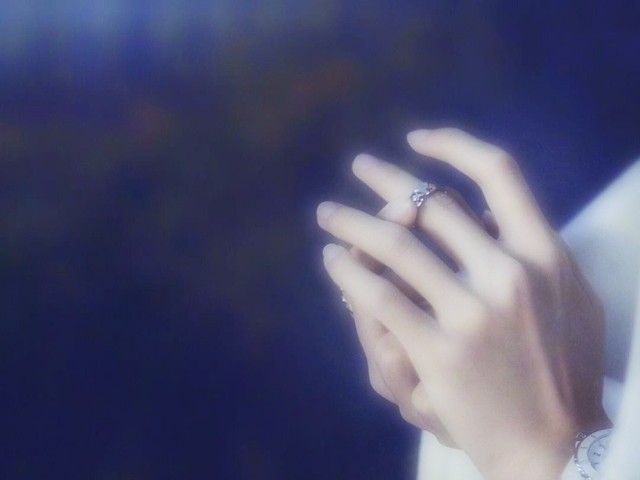 他执起她的手,温柔地将戒指戴在她的左手上。