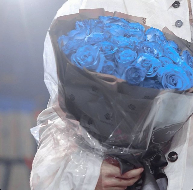 随后那人变戏法似的捧出了一束花,火焰蓝般的玫瑰。