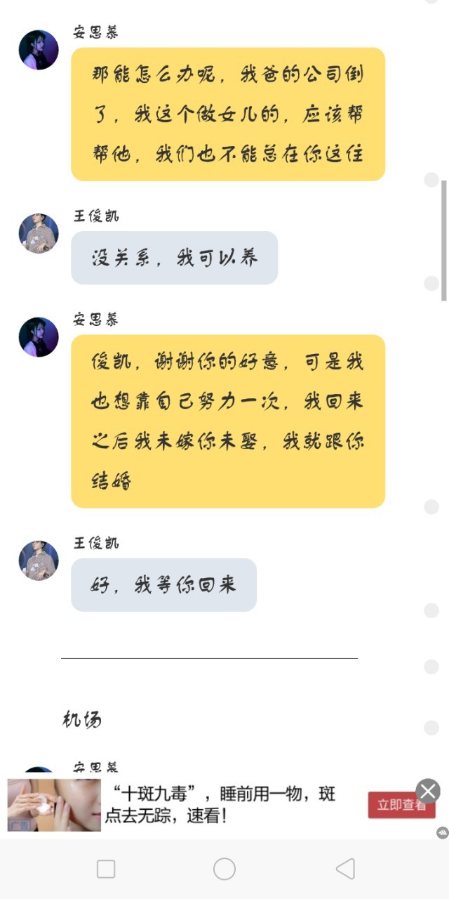 安思慕看见王俊凯有点失落,变笑了起来