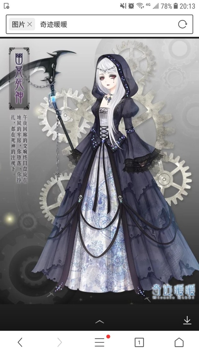 光中出现了一位美丽的公主,她穿着黑色的裙子,梳着银光闪闪的发辫,袖子上有着黑白色的花纹;头上带着美丽的彼岸花皇冠,穿着如黑夜班的斗篷,穿着黑色的高跟鞋