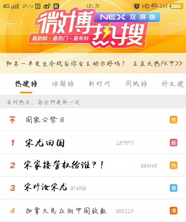 今天早上,宋妤汝点开手机,就看到微博热搜,宋尤回来了?!