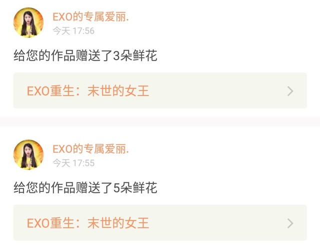 夏秋暖谢谢小陌砸和EXO的专属爱丽的鲜花~~小陌砸小可爱你直接满屏了哦😂暖暖我表示很高兴😂😂