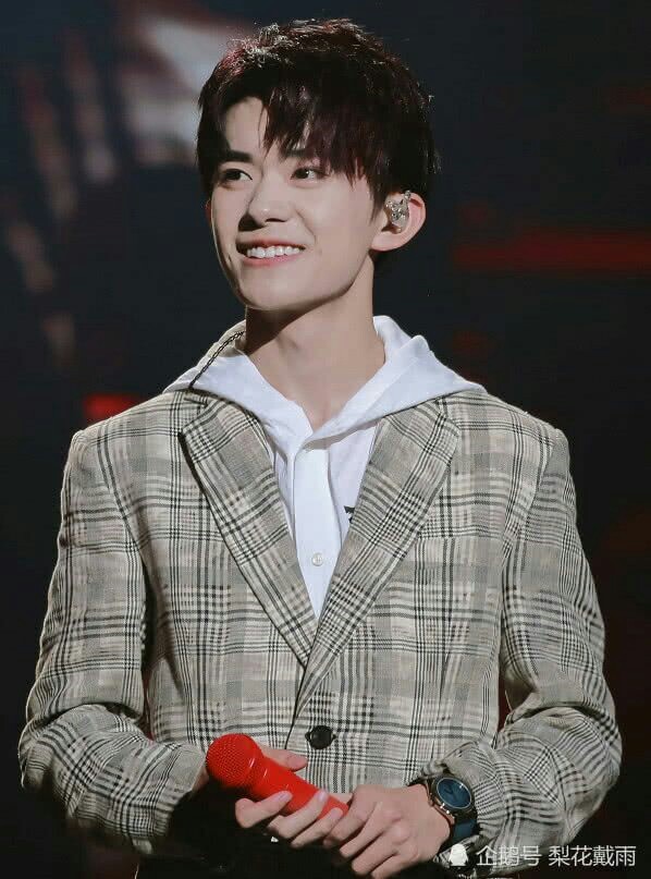易烊千玺易烊千玺微笑着走过来,因为刚才还在练歌,手中还拿着话筒。