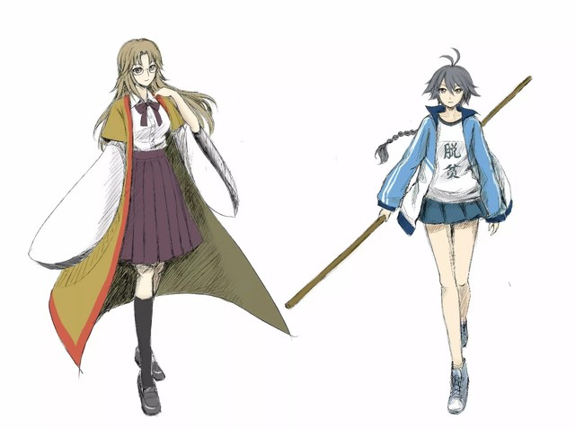 右边的女孩有着一头及腰的长发,精致又面无表情的脸上带着一副眼镜,藏在眼镜下的眼眸里透着满满的傲气,但只有回头看左边的女孩时才会露出温柔的神色,穿着一身过膝长裙,披着一件属于道盟服装的外套。
