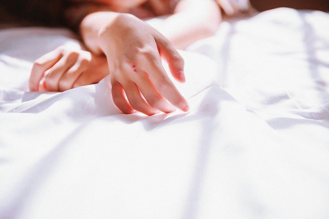 阳光透过窗户洒进房间,几缕阳光调皮的印在床上,在女孩的手上安定下来