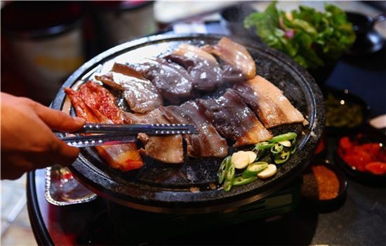 那边,世勋正在疯狂吃烤肉中!