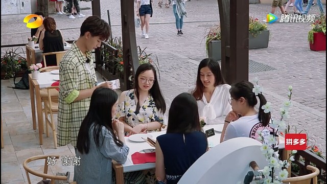 佳恩也转回头看了看,发现忘记拿菜单了,和王俊凯对视笑了