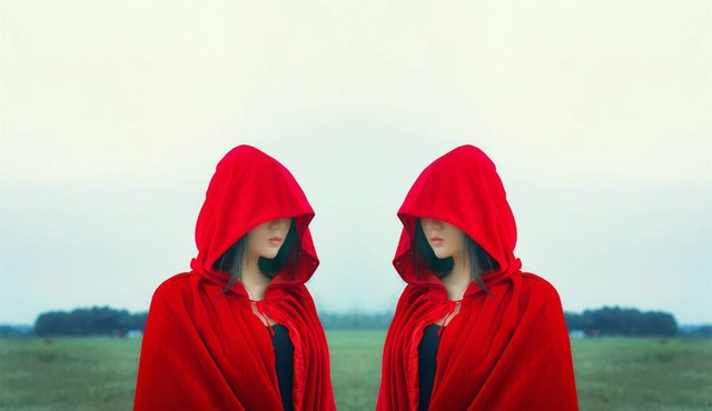 张日山为其撑着殷红的油纸伞,两个人一前一后踏步而来。