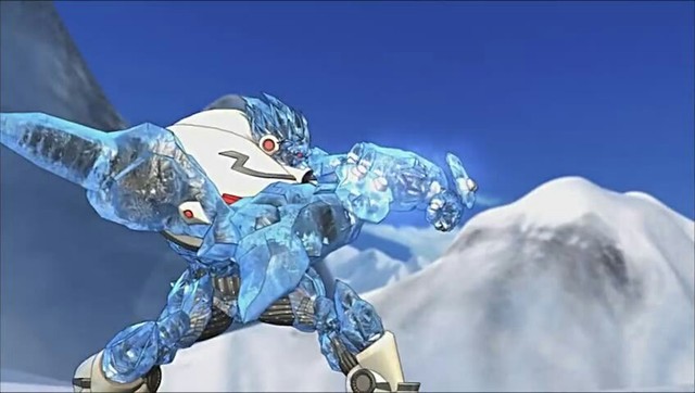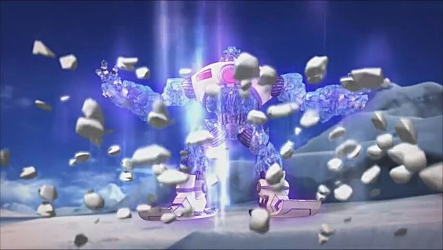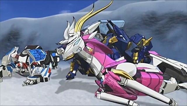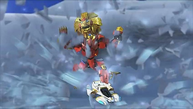 雪羚羊被打了下来,这时候神舟熊一拳把雪怪机械兽打到一边