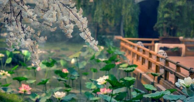 碧色成荫,片片花瓣随风飘落,自有一番别样的风景。