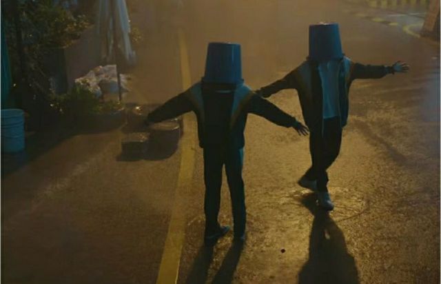 我走过去一手拿一个桶,然后罩在他们头上