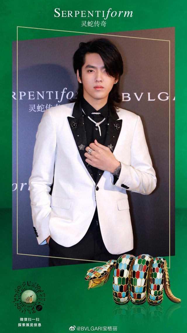 BVLGARI宝格丽品牌代言人吴亦凡@Mr_凡先生亮相成都#SerpentiForm灵蛇传奇#展览发布会,突破亦蜕变,耀眼新生。点击http://t.cn/ESVQt2j和他一起溯源灵蛇古今。
