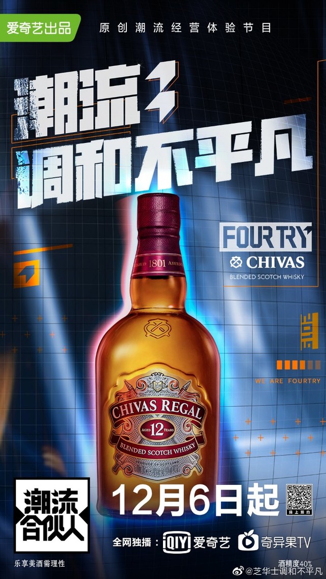潮流合伙人欢迎@芝华士调和不平凡入伙,正式成为FOURTRY战略合伙人!http://t.cn/AiebCljy,锁定爱奇艺#潮流合伙人#,调和不平凡,潮流随我玩,未来一起敢潮不赶潮!
