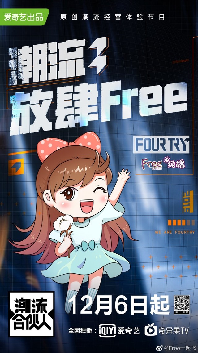潮流合伙人欢迎@Free一起飞入伙,正式成为FOURTRY战略合伙人!http://t.cn/AiebppzL,锁定爱奇艺#潮流合伙人#,天生敢潮,放肆Free,未来一起敢潮不赶潮。