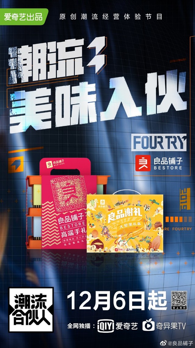 良品造正当潮,FOURTRY!潮流美味即刻入伙,良妹就位给大家带来了美食!12月6日起,每周五晚8点一起看潮综!吃良品![爱你]@潮流合伙人