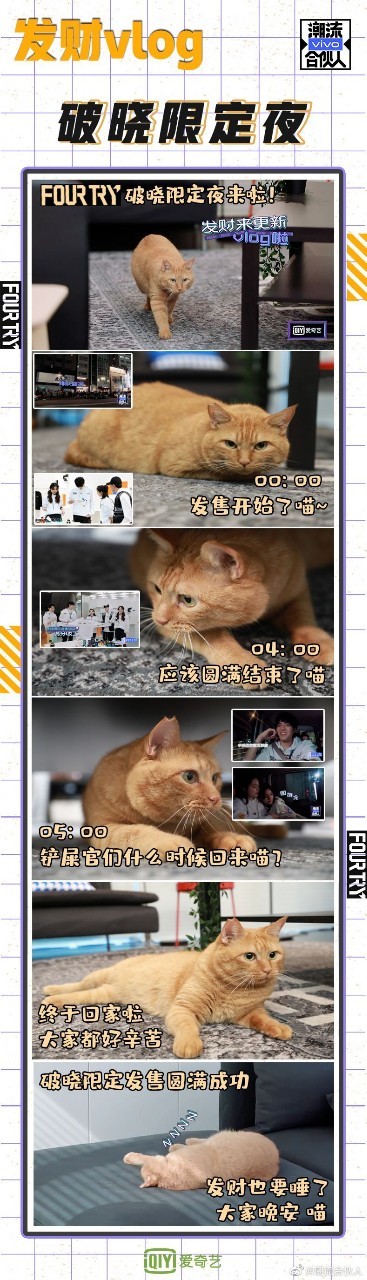 潮流合伙人#潮流合伙人发财Vlog🔛#FOURTRY东京破晓限定#主理人吴亦凡@Mr_凡先生&合伙人杨颖@angelababy@潘瑋柏@赵今麦angel@痞子福克斯彻夜工作到凌晨。带着对大家的想念和对发售现场的向往,留守成员发财开启了脑内云直播[哈哈]每周五晚8点,要记得来看发财哦!喵~