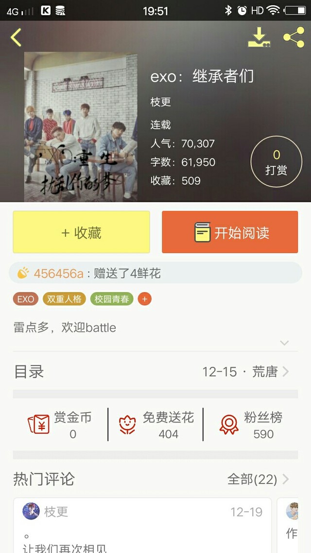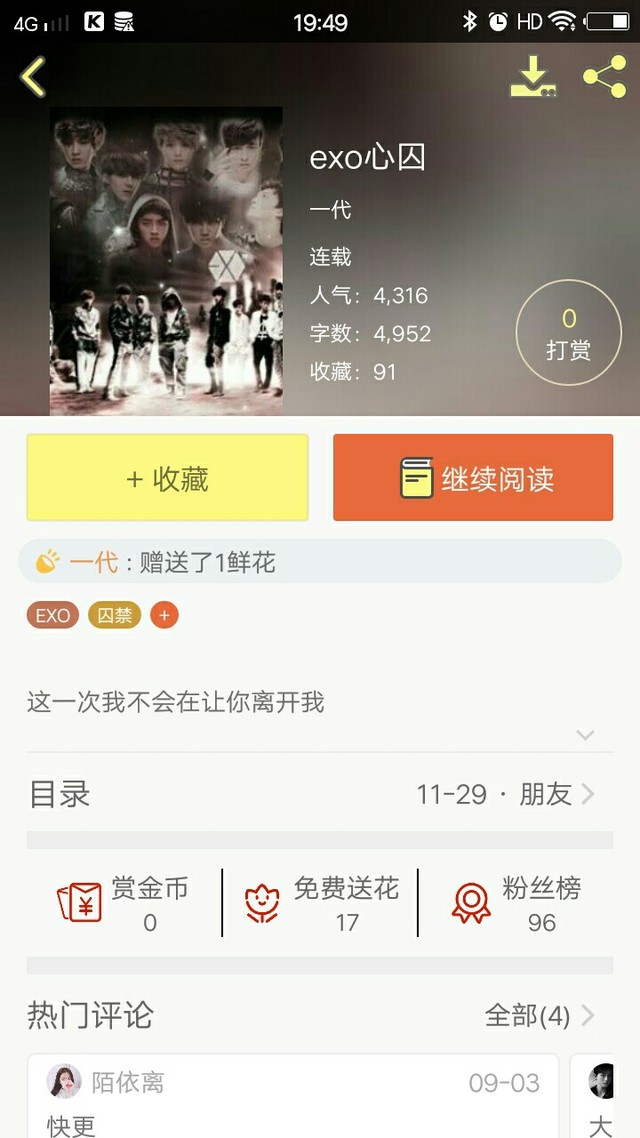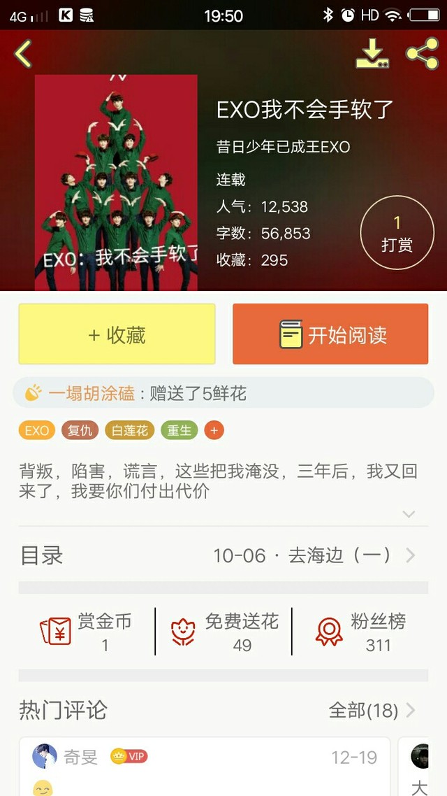 小仙女萝娣娣我只是比较喜欢看EXO小说而已,除了偶尔看一些古装小说,其它的小说我真的看不下去😂