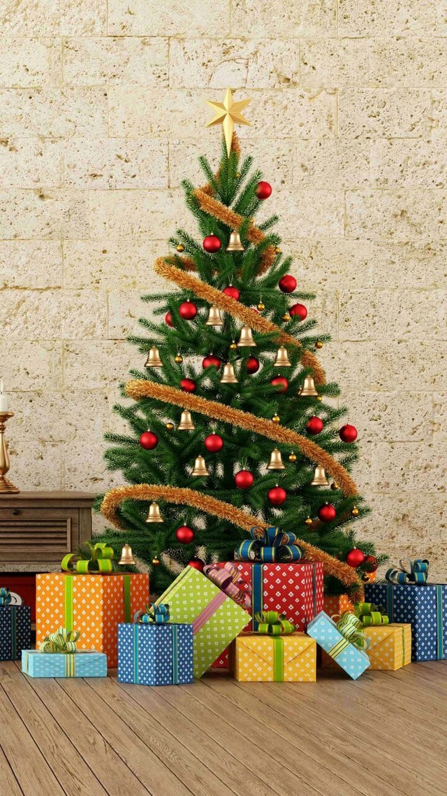 众人银色的圣诞树下