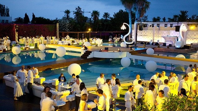 一个偌大的城堡灯火通明门口停满了跑车,