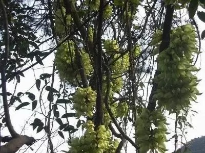 花开的季节,禾雀花吊挂成串,直接长在藤蔓上,每串二三十朵,由一青绿色小藤串连,盛开时,古藤老树下挂满禾雀花,酷似千万只禾雀栖息于林中浓荫下,蔚为奇观。