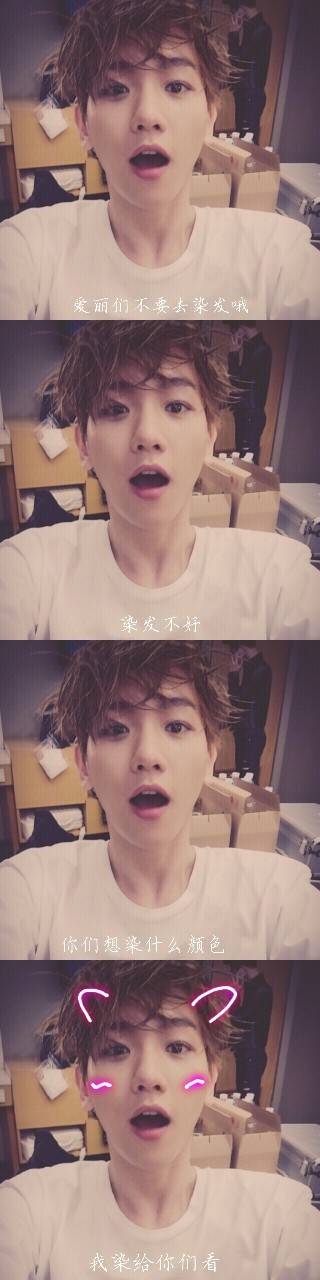 边伯贤爱丽们不要去染发哦,染发不好,你们想染什么颜,我染给你们看。