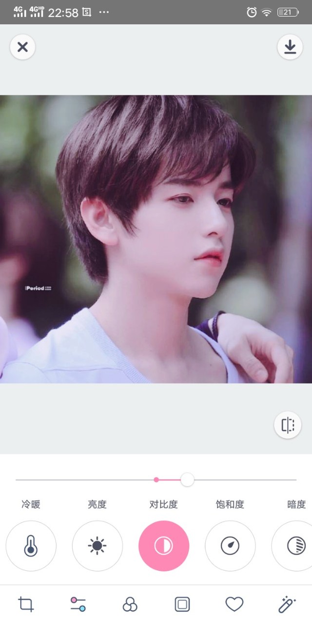 边歪歪。对比度加+20%