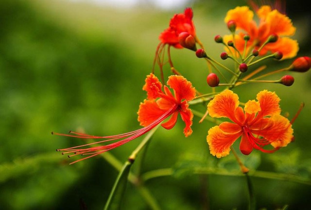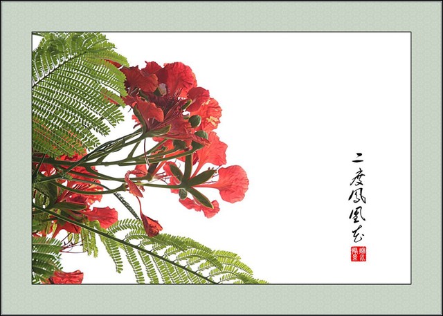 一朵凤凰花就像一小团火焰,一树凤凰花就像一支燃烧的火把,满街盛开的凤凰花呀,照得整个城市都红彤彤的。