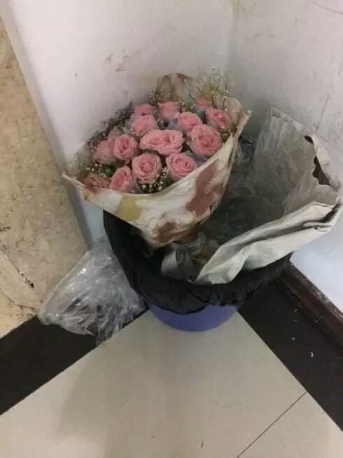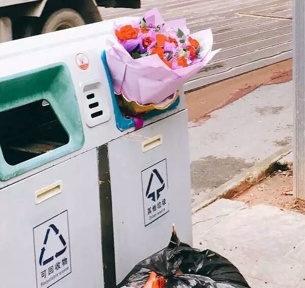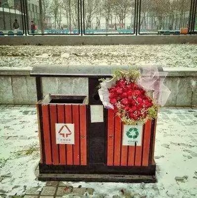 如今就连垃圾桶都收到了鲜花,而单身的你却没有……