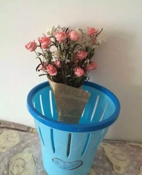 收到鲜花的垃圾桶也是可以用来虐狗的。